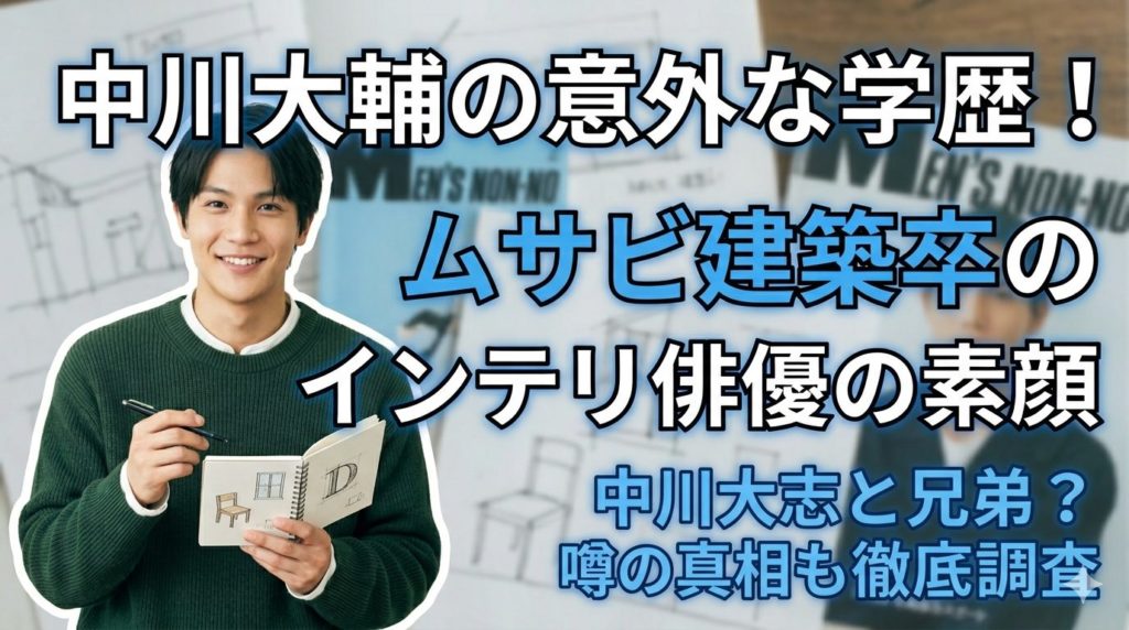 俳優やモデルとしてマルチに活躍する中川大輔さん。その端正なルックスはもちろん、実は「武蔵野美術大学卒」という異色の経歴を持つインテリ派としても注目を集めています。